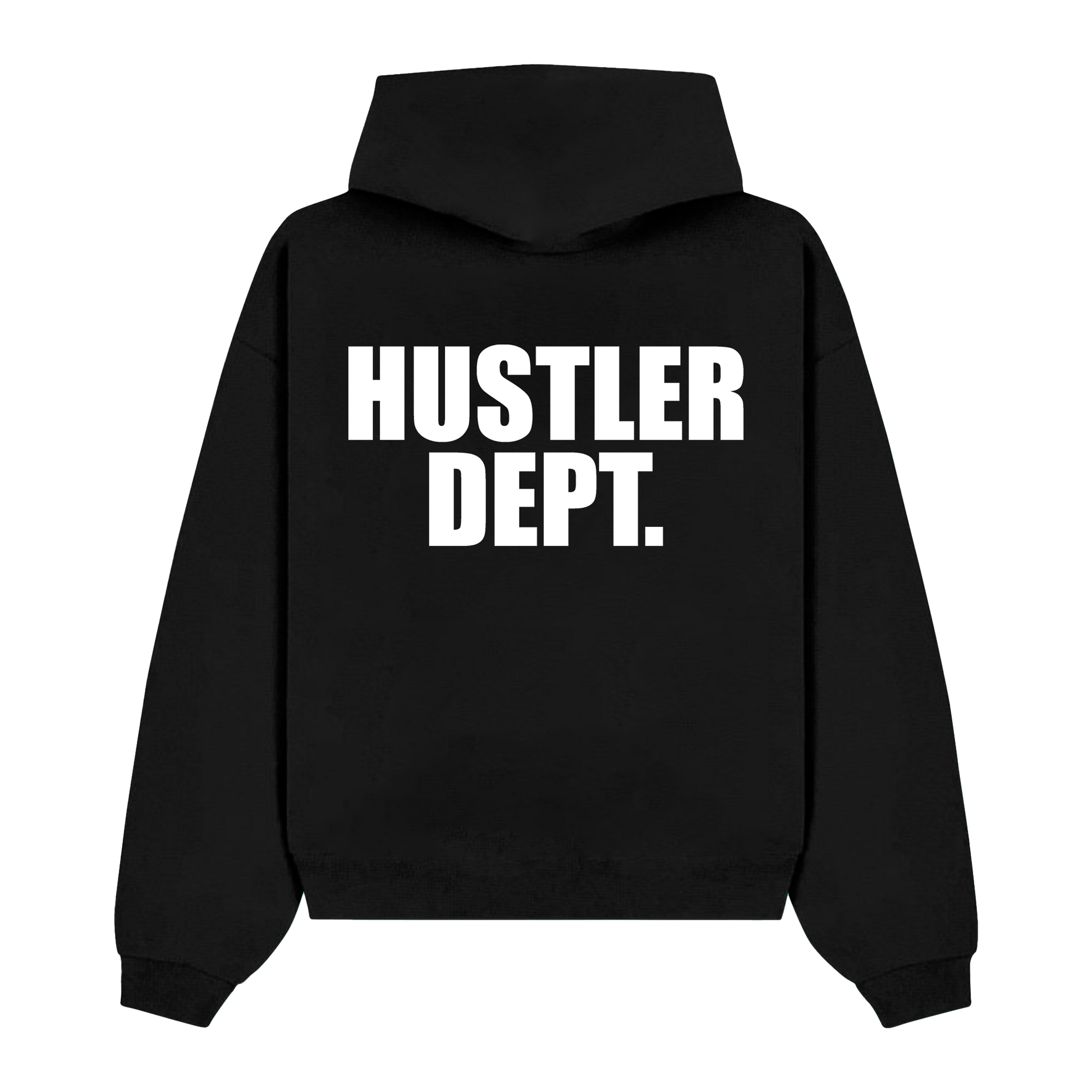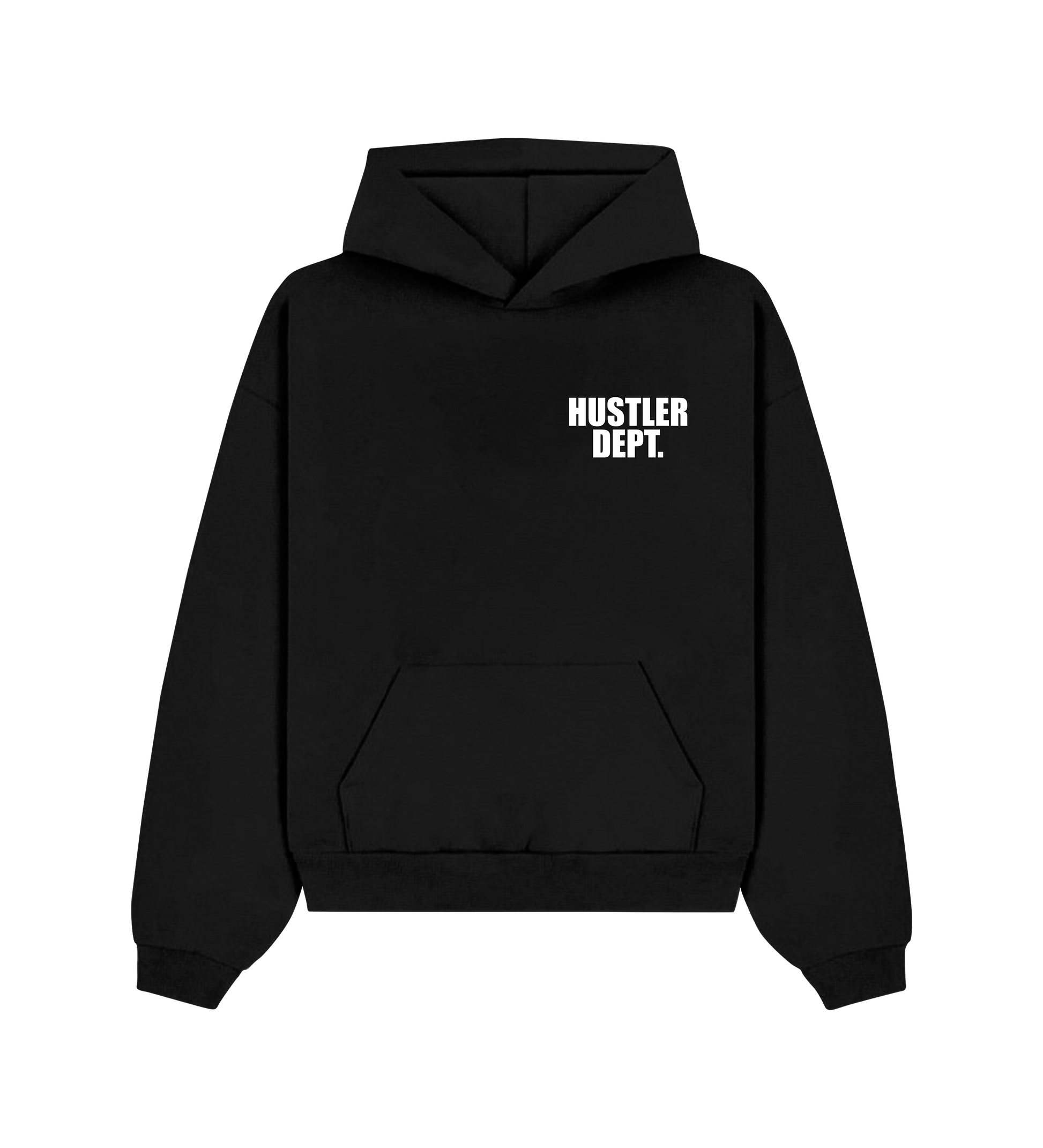 An oversized fit loopback cotton-jersey hoodie, featuring bold HUSTLER DEPT logo on the front and back. Designed with a front pocket and appliquéd with our 'art on display' patch by the cuff.